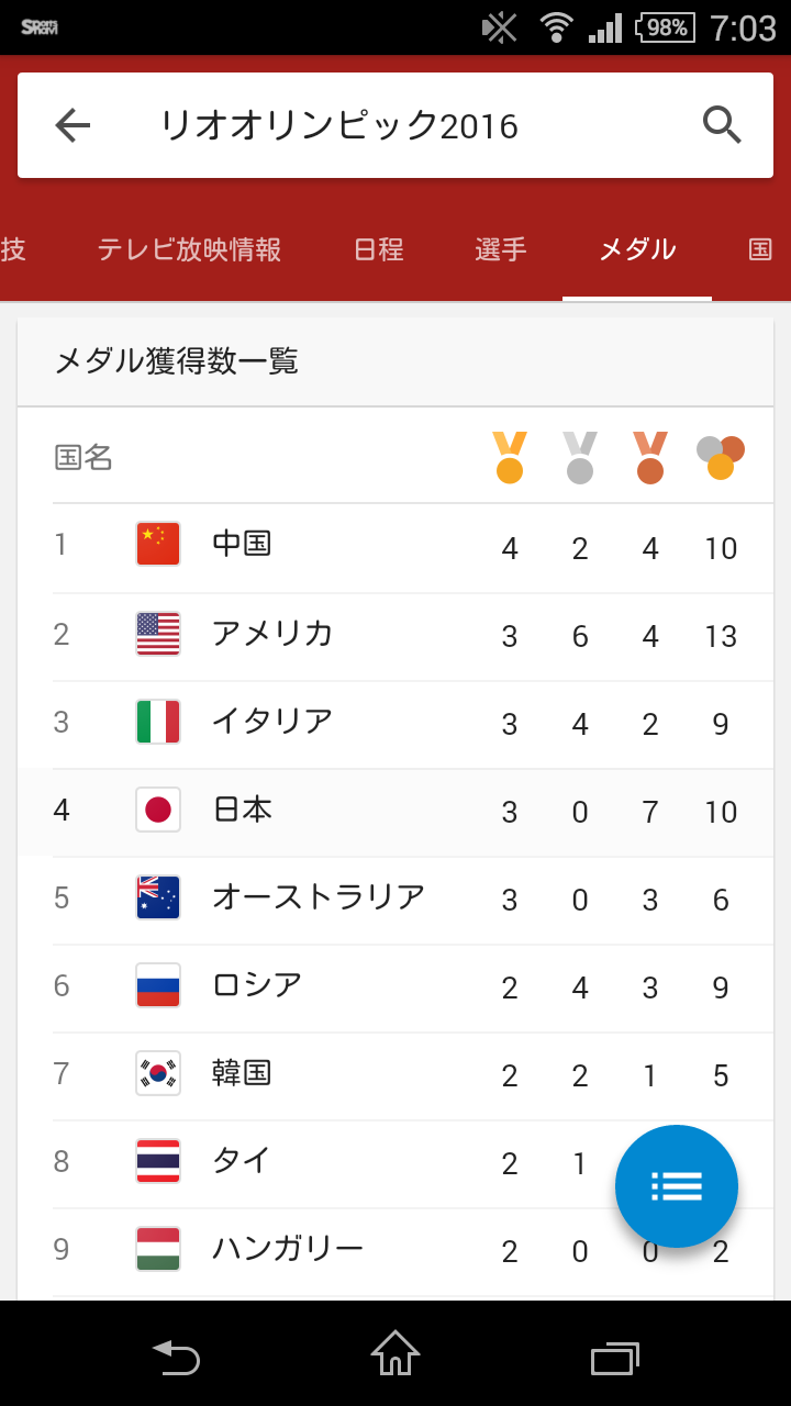 リオ五輪の国別メダル獲得数、なんでマスコミが静かなのかと思ったら、今のところ日本が韓国より上位なんですね。